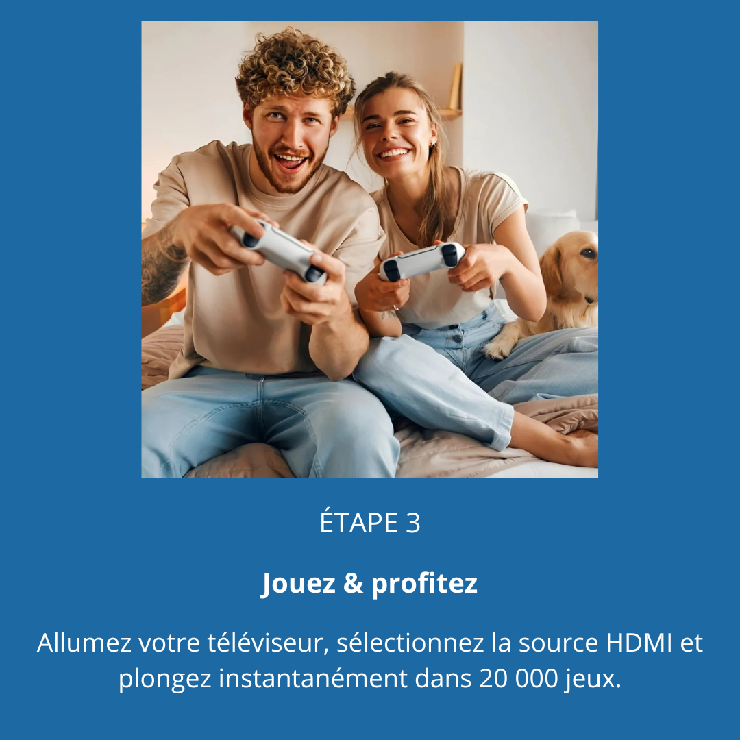 Super simple à installer, interface fluide et jeux qui tournent parfaitement. On a passé la soirée à rejouer nos classiques — tout le monde a adoré.